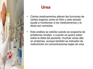 Sin embargo la creatinina es un mejor indicador ya que la urea puede ser alterada en casos de deshidratación uso de diuréticos sangrado digestivo alimentación rica en proteínas enfermedad del hígado etc. En general para la evaluación de los riñones la urea y la creatinina se solicitan conjuntamente. Sin embargo en algunas personas también puede indicar enfermedades en los músculos como.